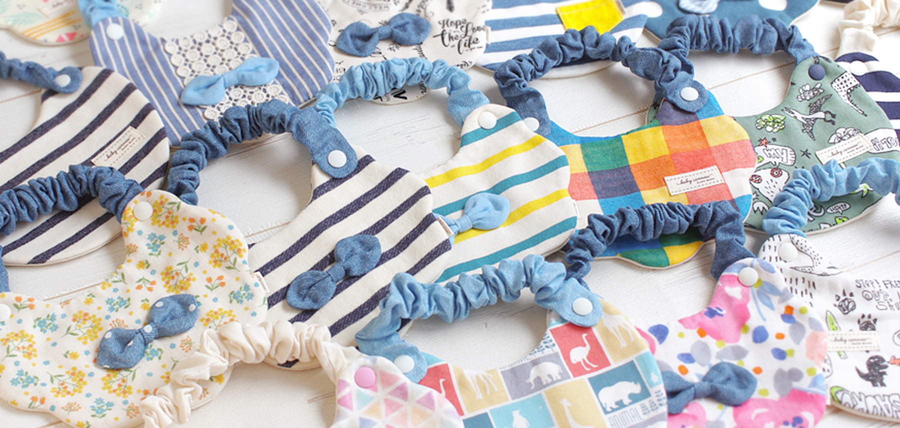 ふわっふわでベビーに優しいスタイを中心に、おもちゃやヘアクリップ等、かわいいベビーアイテムを販売しています!